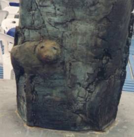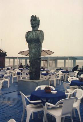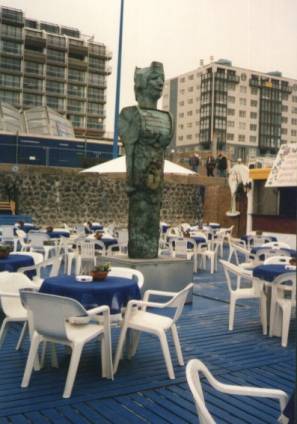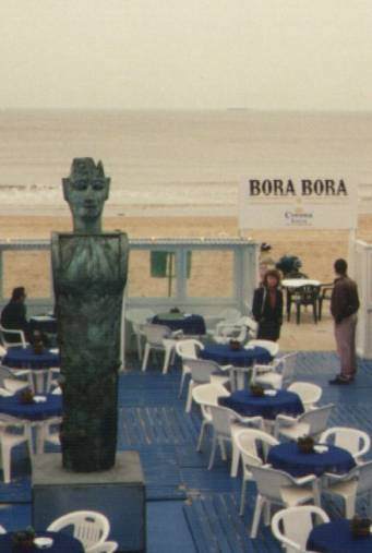 Vanaf 1993 iedere zomer te zien op Strandpaviljoen Bora Bora in Scheveningen. De beide hoofden van het beeld hebben om het jaar zeezicht.