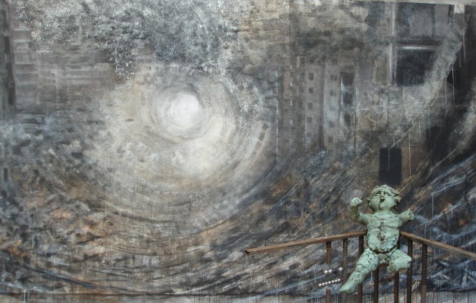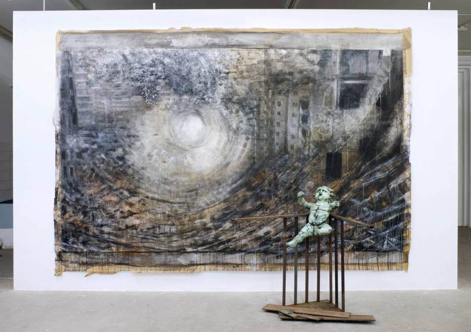 Papier, houtskool, Oost-Indische inkt, brons en hout